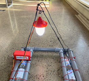 Du finanzierst ein schwimmendes Lichtsystem mit Lampe und Batterie.